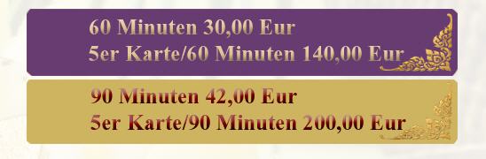 Die Massage ist ideal bei verkrampften Muskeln und einem verspannten Körper. Sie basiert auf Elementen der Thai Massage und der Thai Aromaölmassage und löst Verspannungen des Körpers auf sanfte Weise. Mit verschiedenen Massagetechniken werden durchblutungsfördernde und schmerzlindernde Wirkung erzielt. Ganzheitlische Enspannung und Wohlbefinden garantiert.